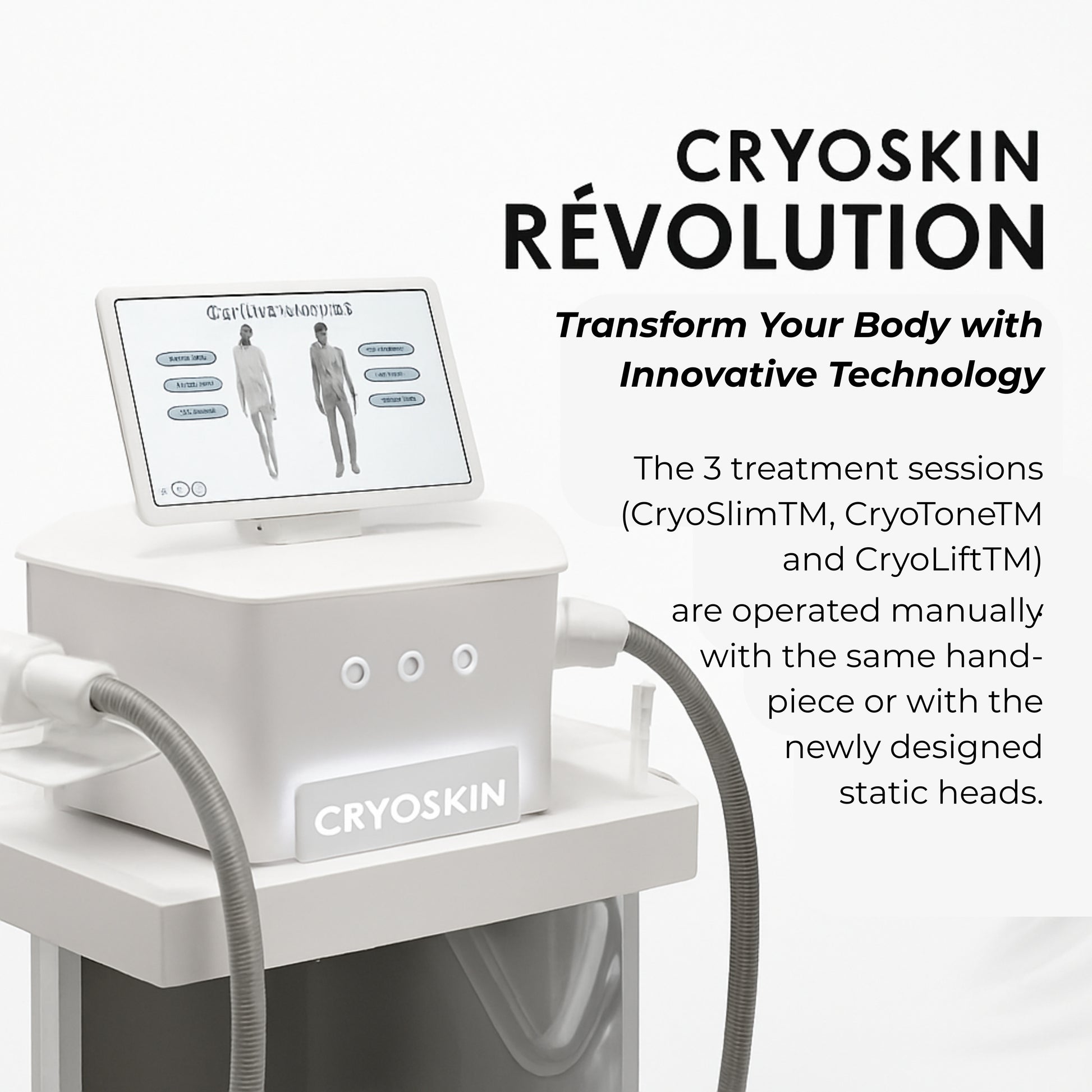 Transform your body with Cryoskin® Revolution, an advanced fat-freezing technology designed for precise body sculpting. This cutting-edge system offers effective, non-invasive solutions to redefine your physique—helping you slim, tone, and rejuvenate with no downtime.